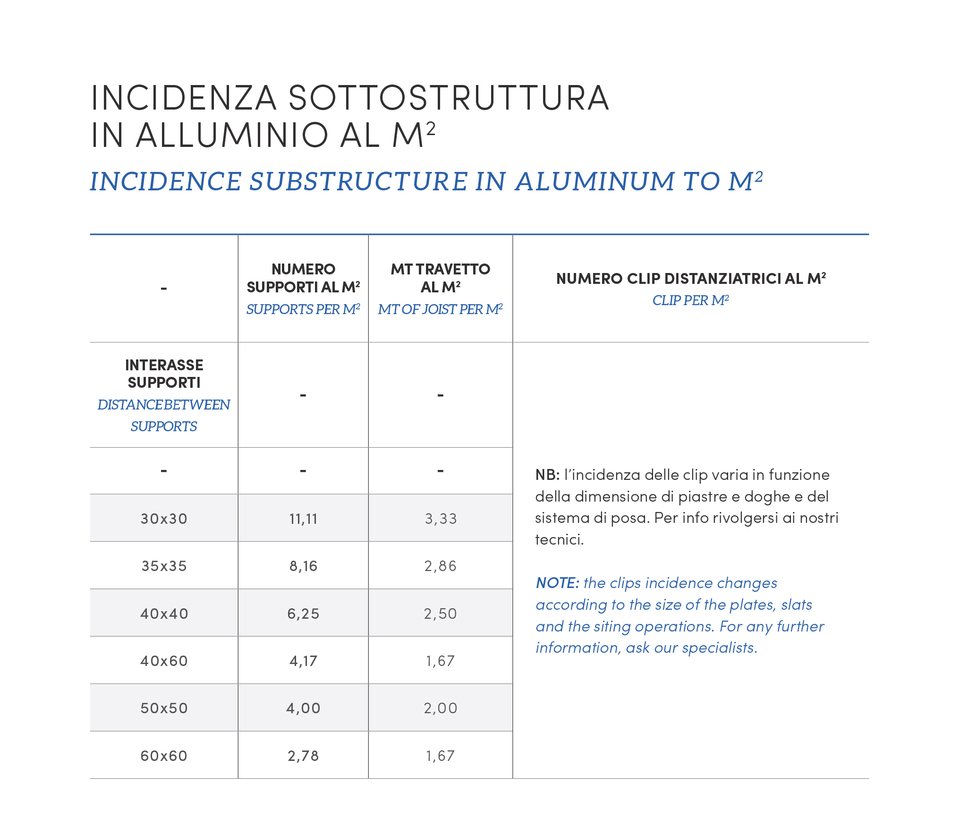 Knowing the materials thoroughly to match the right support, is a basic step for a correct installation; providing a correct assembly scheme is the point of arrival of years of experience in the raised floor field; being able to quantify the number of supports necessary to complete a pose means simplifying a process that at first sight might seem complicated.